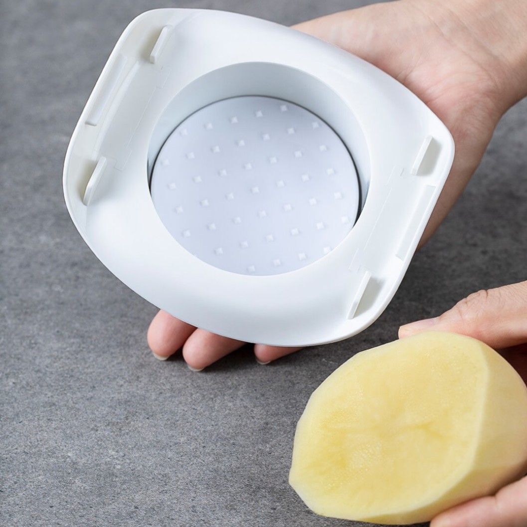 Держатель для продуктов, специально разработанный для защиты рук при работе с небольшими и короткими ингредиентами. Используйте его для безопасной и эффективной нарезки и тёрки.