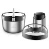 Новинка изготовлена из прочной нержавейки, имеет достаточно мощный электродвигатель мощностью 400 Вт. Двойной нож вращается с высокой скоростью, образуя трехмерный вихревой поток, обеспечивающий максимально эффективное измельчение мяса и овощей.