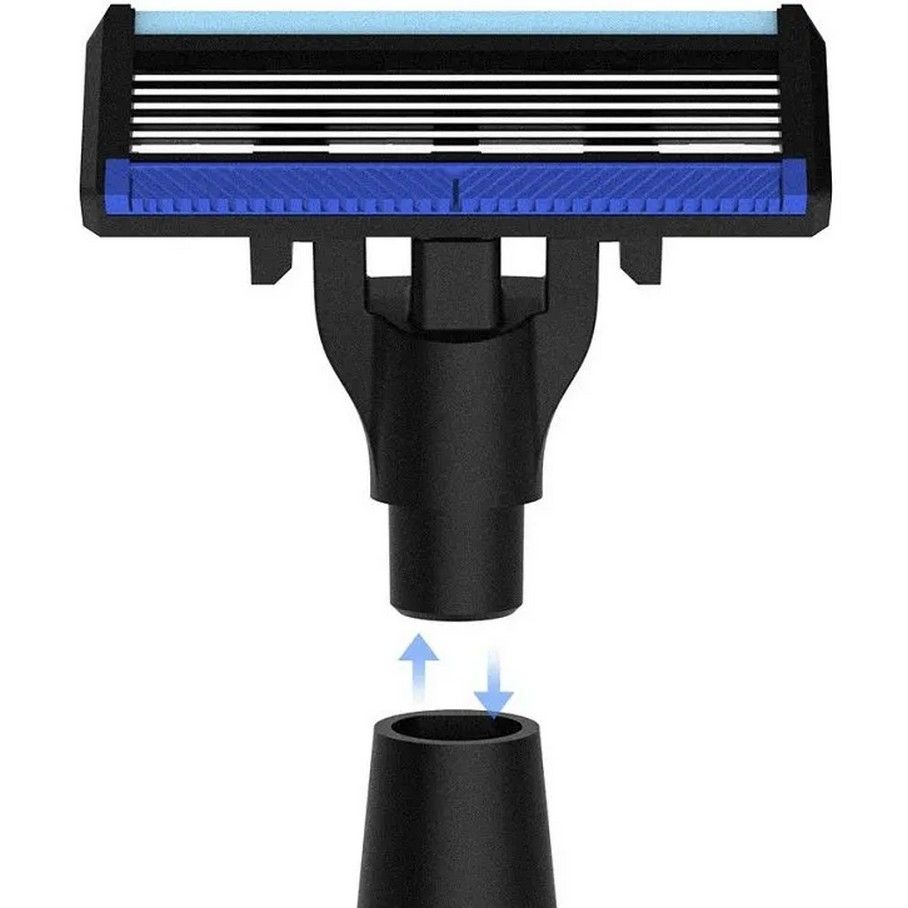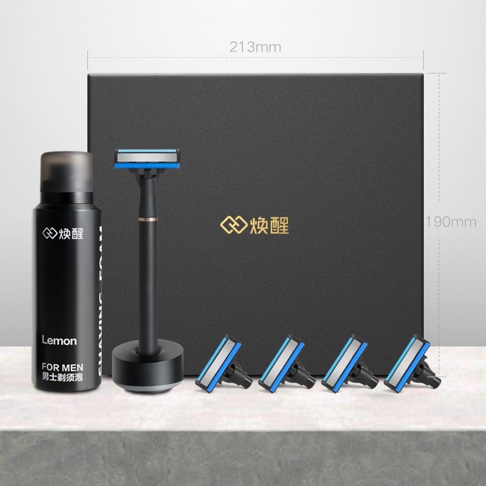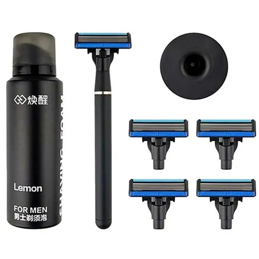 Lemon Razor H600-8 - набор для бритья, включающий в себя высококачественный станок, 5 сменных кассеты, пену для бритья и подставку для бритвы. Шесть лезвий из немецкой стали обеспечивают безупречное качество бритья. Специальная полоса с антибактериальным покрытием увлажняет кожу и не вызывает раздражения.
