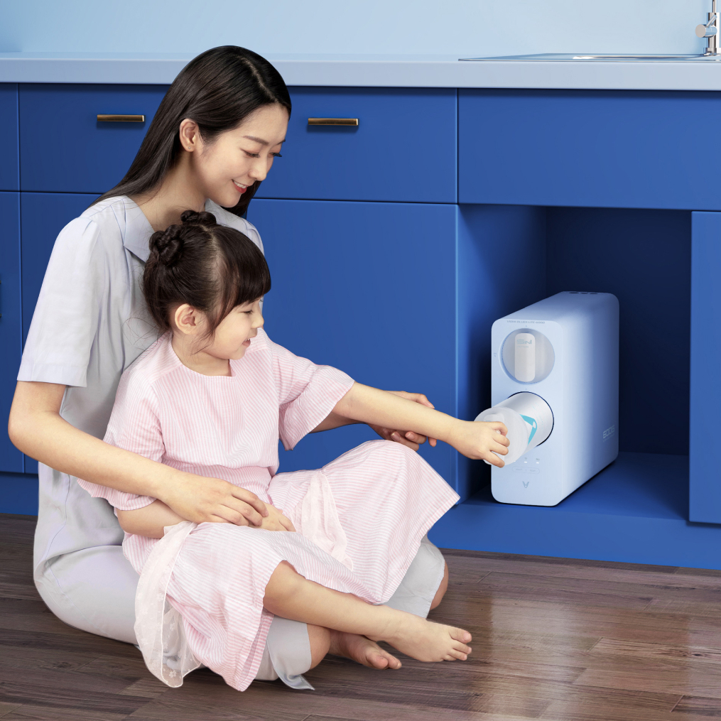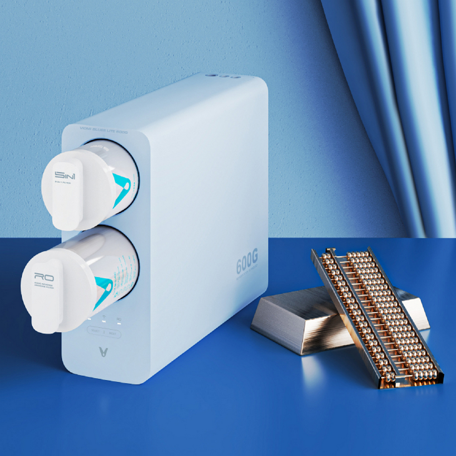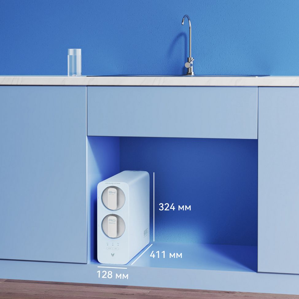 Компактный и лаконичный нежно-голубой очиститель воды Viomi Blues Lite 600G может работать без подключения к резервуару для жидкости. Небольшой корпус создан в соответствии с трендами на технологичный кухонный интерьер, а установка очистителя занимает всего несколько минут.