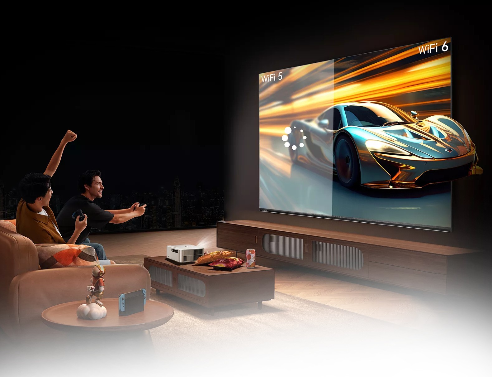 PV800 PRO оснащён современными модулями Wi-Fi 6 (поддержка диапазонов 2,4 ГГц и 5 ГГц) и Bluetooth 5.0, обеспечивающими сверхбыструю и надёжную беспроводную связь. Благодаря этому вы получаете плавный стриминг фильмов, мгновенное зеркалирование с телефона и стабильную онлайн-игру без задержек и обрывов сигнала — для непрерывного и комфортного развлечения на большом экране.