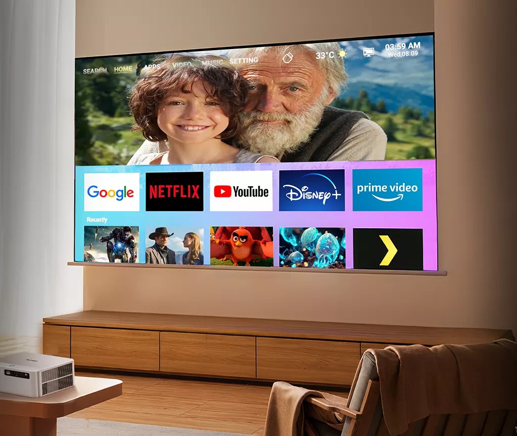 Благодаря встроенной Google TV проектор мгновенно превращается в полноценный домашний кинотеатр. Не нужны дополнительные приставки или ТВ-боксы — вы сразу получаете доступ к популярным сервисам, таким как Кинопоиск, YouTube, Okko и IVI. Интуитивный интерфейс и простое управление делают просмотр на большом экране лёгким, удобным и по-настоящему захватывающим.