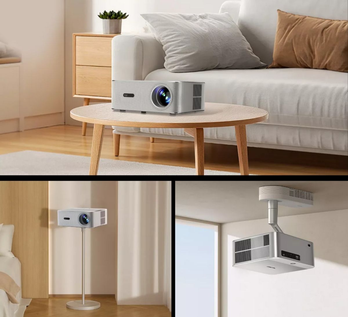 PV800 PRO легко адаптируется под любое пространство: его можно закрепить на потолке для минималистичного и аккуратного вида, установить на настенный кронштейн для надёжной фиксации или просто разместить на столе для быстрого запуска. Какой бы способ вы ни выбрали — проектор обеспечит идеальное изображение и удобство использования.