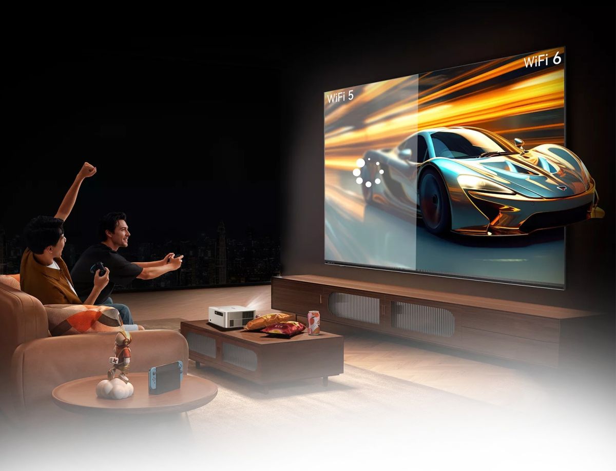 Это делает проектор идеальным центром домашнего кинотеатра — будь то просмотр фильмов, трансляций спортивных событий или игровой процесс: вы получаете по-настоящему кинематографическое погружение.