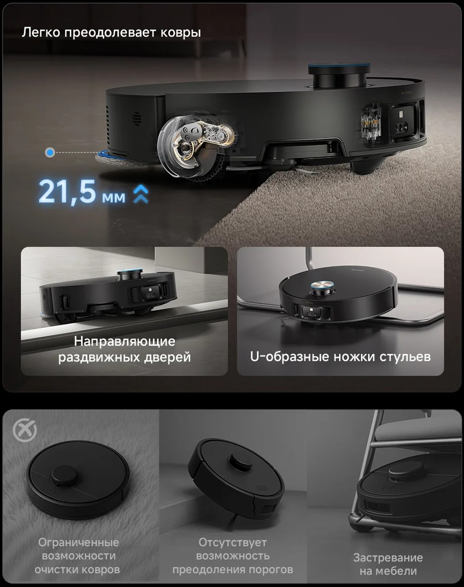 Matrix10 Ultra определяет высоту порогов и выбирает идеальную стратегию для безопасной навигации и беспрепятственного выполнения уборки в вашем доме.