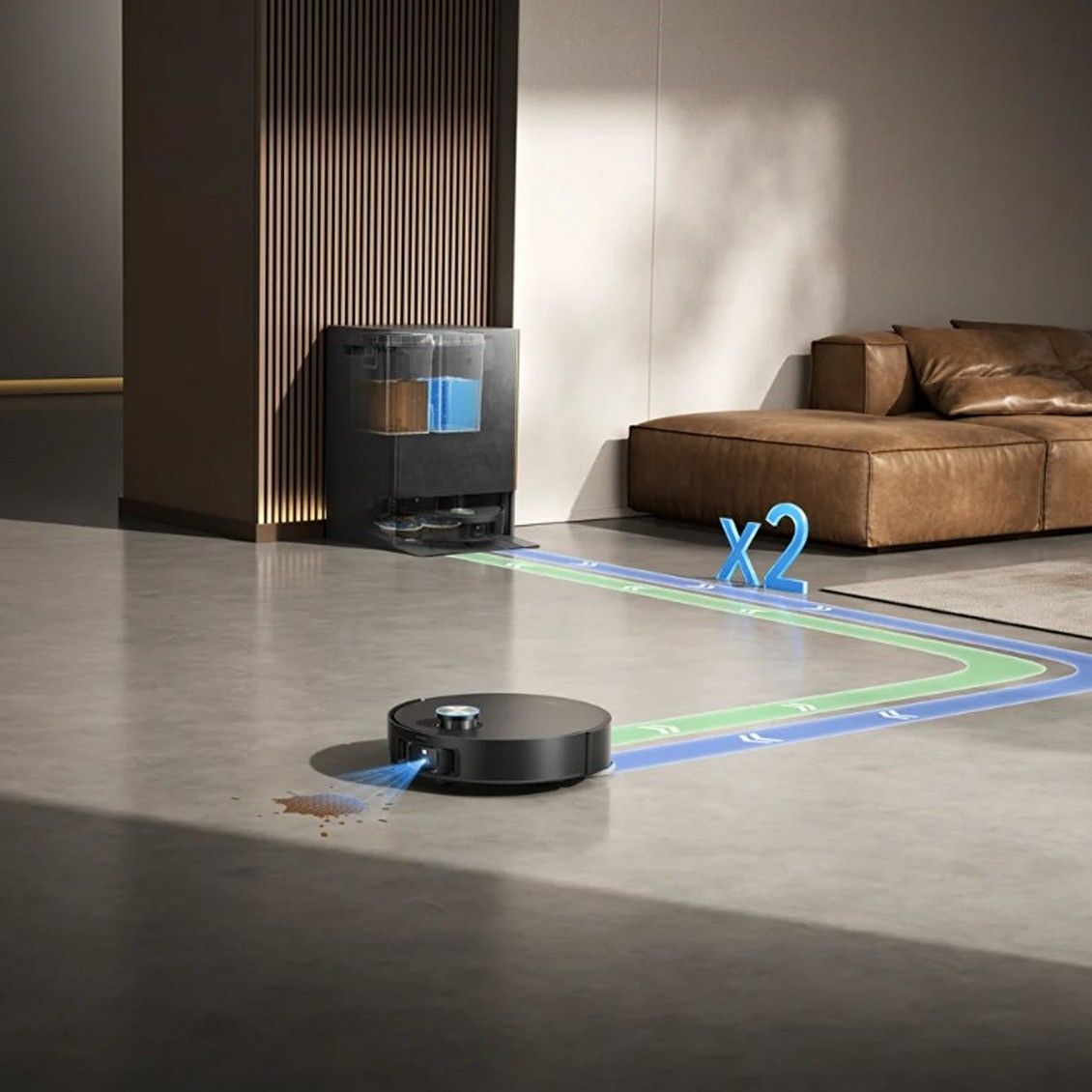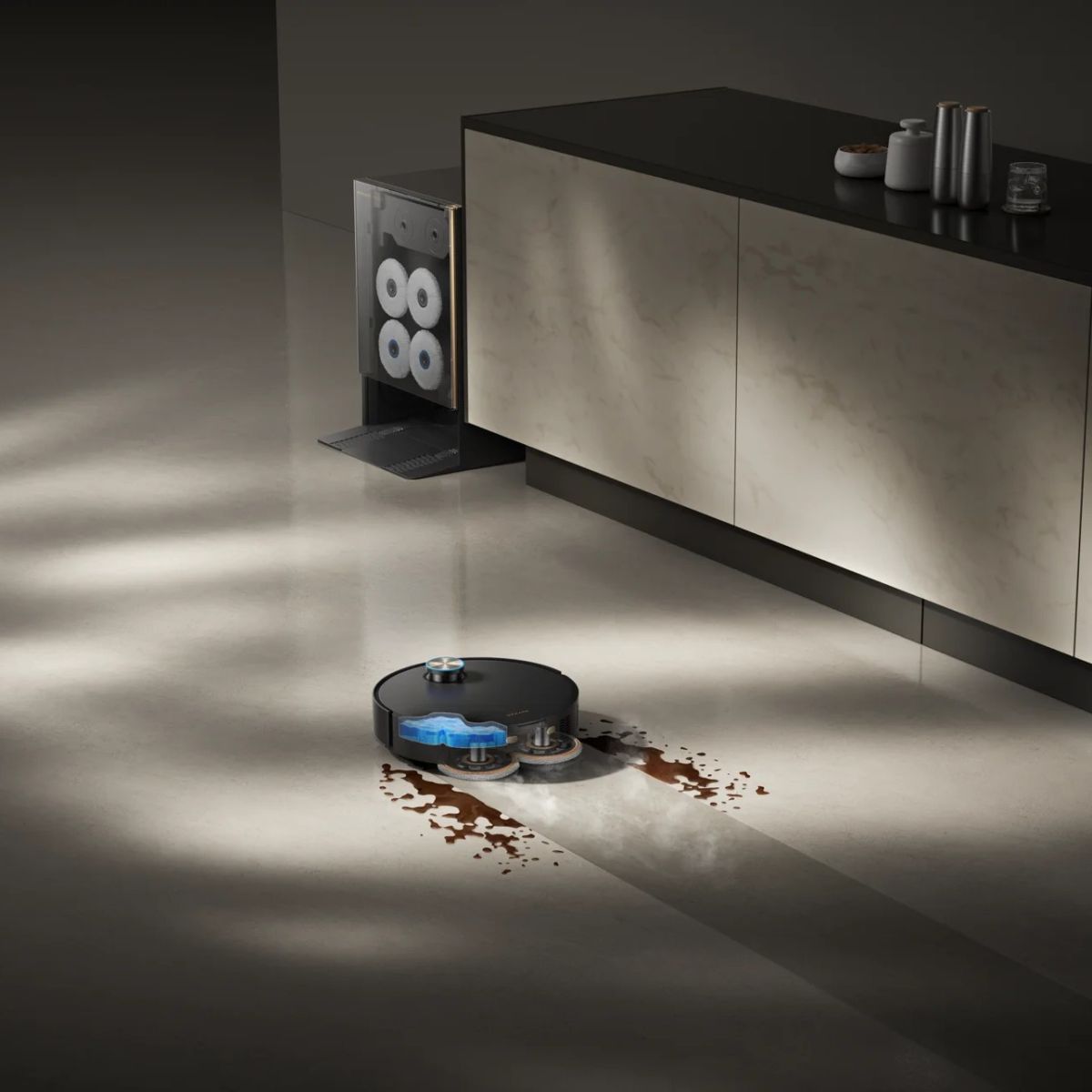 Самое время расслабиться, ведь автоматизированная система выполнит заправку, промывку, сушку и зарядку робота-пылесоса за вас.