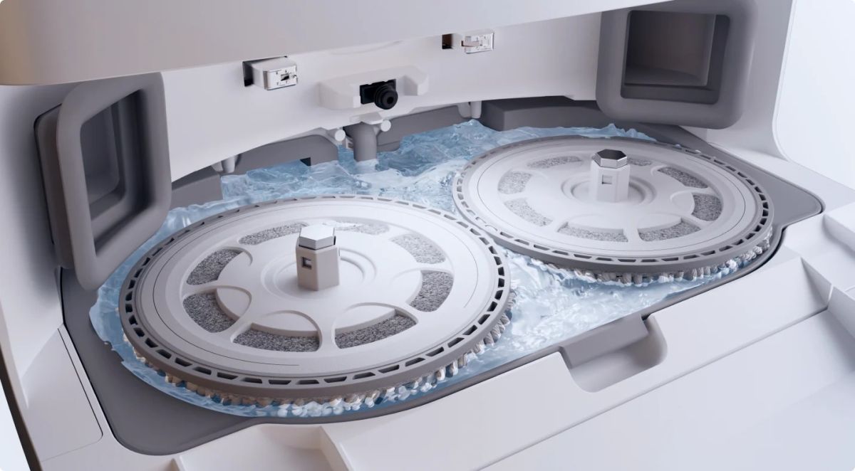 Многофункциональная док-станция, вдохновленная процессом мытья в стиральной машине, предлагает возможности полной промывки салфеток. Этот процесс включает в себя медленную предварительную стирку, среднее полоскание и высокоскоростной отжим. Более того, док-станция динамически регулирует скорость и поток воды, чтобы обеспечить эффективность и удобство.