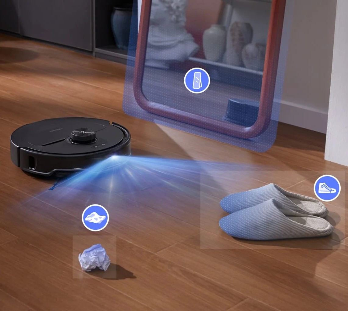 Благодаря структурированному свету и RGB-камере робот распознает и избегает 62 типов объектов в 20 категориях.