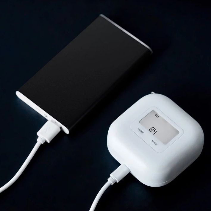В отличие от многих других лазерных рулеток с батарейками, эта модель получила собственный аккумулятор на 300 мАч. Время автономной работы гаджета обеспечивает осуществление более 2000 измерений. Для зарядки прибор подключается к источнику питания с помощью USB-кабеля. Уже через 40 минут он будет полностью готов к работе.
