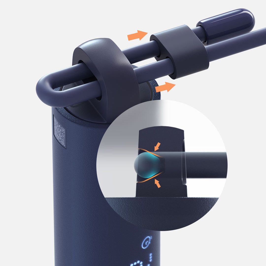 Конструкция с V-образным сужением позволяет легко регулировать длину верёвки, подходя для людей разного роста. Верёвка прошла тесты на прочность и износостойкость, она не путается, не скручивается и обеспечивает более плавные и комфортные тренировки.