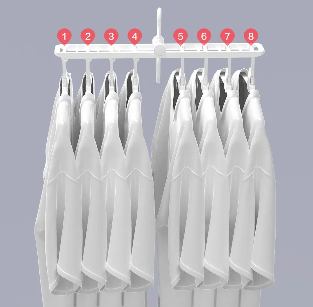 Для равномерной и быстрой сушки белья, необходимо постоянно менять его положение и поворачивать невысохшую часть к солнечной стороне. Благодаря гибкому крючку, новая вешалка от Xiaomi может вращаться на 360˚ и принимать оптимальное положение для максимально быстрого результата.
