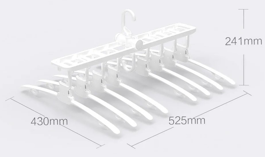 Xiaomi Quange Full-Size Magiс Folding Hanger может разместить сразу 8 предметов одежды для их последующего хранения или сушки.
