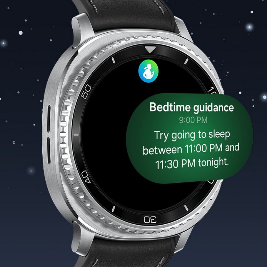 Просыпайтесь готовыми к задачам текущего дня с функцией советов по времени сна. На основе данных по времени сна, отслеживаемых вашим устройством Galaxy Watch8 Classic, получайте обзоры по режиму сна для понимания того, сколько вам нужно отдыхать и какое время сна является для вас наиболее оптимальным. Когда ваш день приблизится к концу, Bedtime Guidance напомнит вам о необходимости заканчивать свои дела, помогая выспаться, чтобы оставаться бодрыми и внимательными весь следующий день.