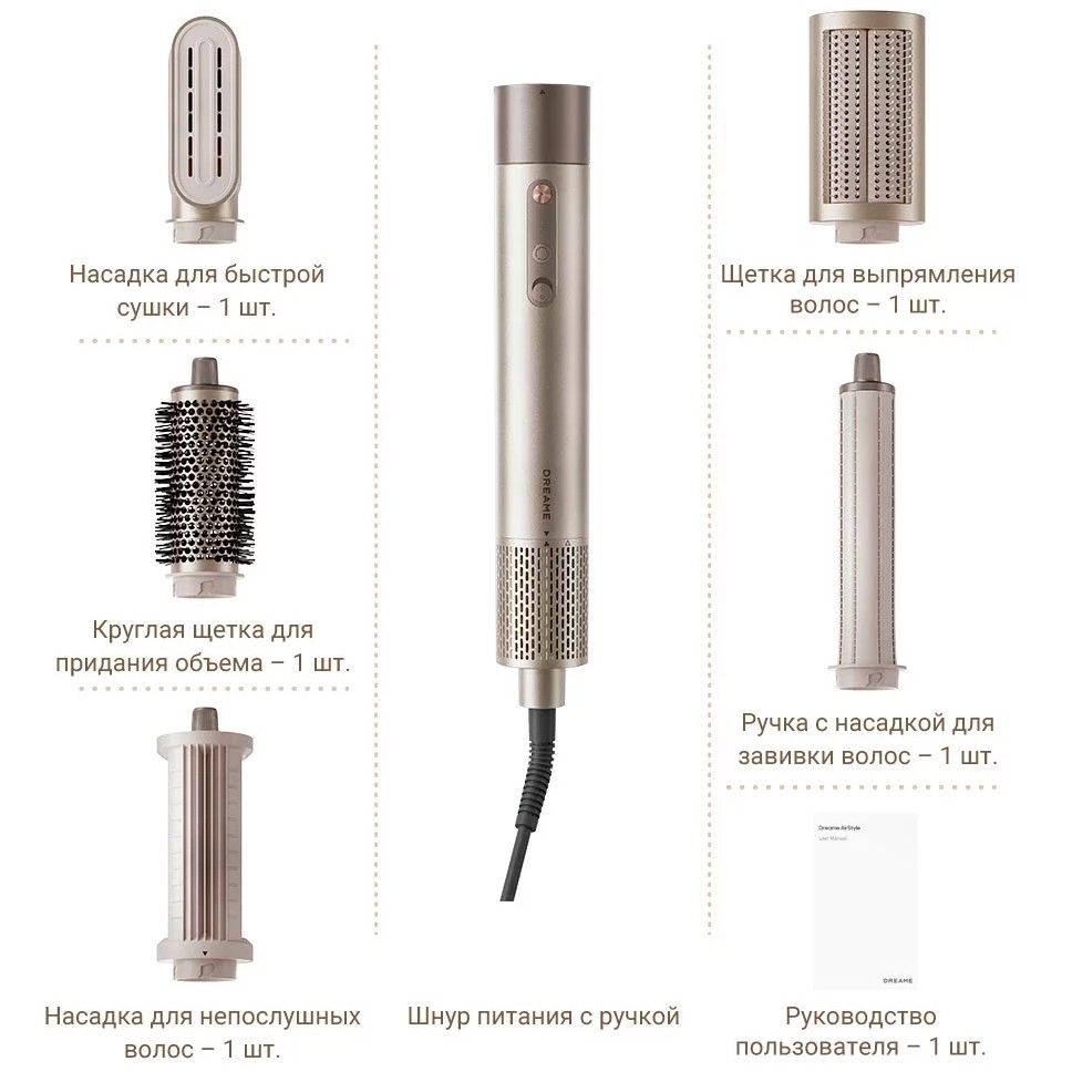 Стайлер Dreame представляет собой инновационное устройство, которое объединяет функции сушки и укладки волос, и обеспечивает идеальный результат для всех типов волос. Благодаря высокой мощности и универсальности, стайлер Dreame AirStyle позволяет с легкостью создавать уникальные образы.