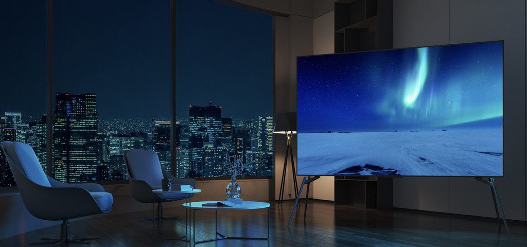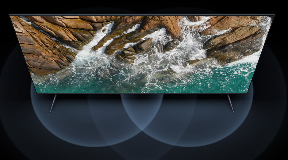 Толщина рамок по периметру совсем мала, что позволило создателям добиться того, что дисплей занимает 97,25% фронтальной панели телевизора.