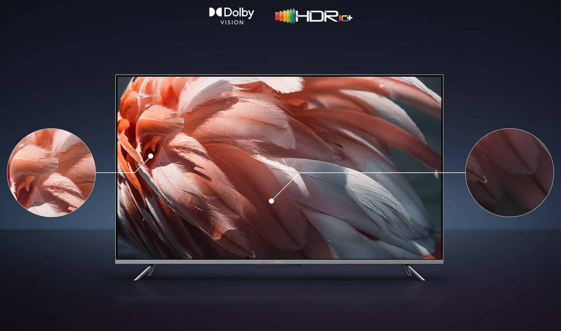 - Дисплей: QLED, 4K 3840 x 2160, DCI-P3 97%, 1,07 млрд цветов, 60 Гц, MEMC: 60 Гц, угол обзора: 178°(Г)/ 178°(В), поддержка Dolby Vision, HDR10+, HDR10, HLG