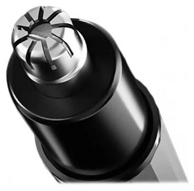 Триммер оснащается встроенным аккумулятором емкостью 320 мАч, который способен проработать до 90 минут без подзарядки. Длительность зарядки батареи – 120 минут через кабель USB Type-C. Корпус соответствует стандарту защиты от влаги IPX7. Высокая скорость вращения триммера обеспечивается за счет мотора на 60 000 оборотов в минуту. Головка триммера вращается на 360°, что позволяет ей справляться даже с густыми и жесткими волосами в носу.