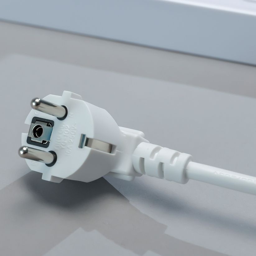 Изделие имеет достаточно компактные размеры, выполнено в виде длинной прямоугольной планки с мягкими закругленными краями, объединенной с проводом длиной 1,8 м, что позволяет пользователям удобно расположить его в любом месте помещения, не беспокоясь о том, что оно займет слишком много места.