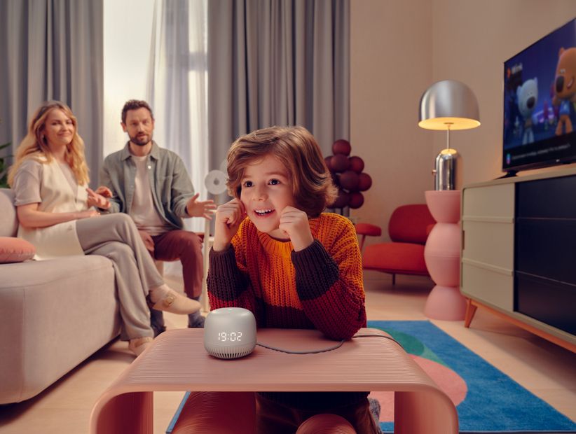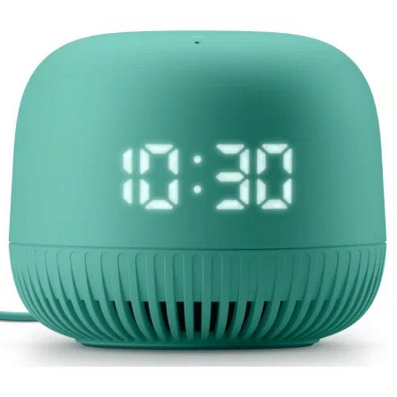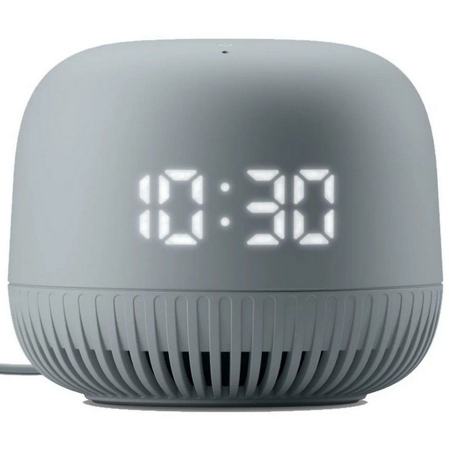 Модель оборудована широкополосным динамиком, который обеспечивает получение чистого насыщенного звука без искажений. Чувствительные микрофоны способствуют удобному общению с голосовым помощником. На корпусе есть сенсорная панель для ручного управления. На дисплей выводится цифровой циферблат часов. Корпус из прочного материала характеризуется стойкостью к появлению царапин.