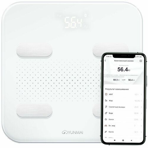 Умные диагностические весы Yunmai S (М1805) подойдут людям, следящим за своим здоровьем и фигурой. Они способны точно измерять вес, могут и определять физический возраст, индекс мышечной, жировой и костной массы тела, уровень базального метаболизма, количество висцерального жира и белка. Данные всех измерений сохраняются в облако Yunmai, где их вместе с данными миллионов других пользователей обрабатывает и анализирует особый алгоритм, обеспечивающий точность и надежность результатов.