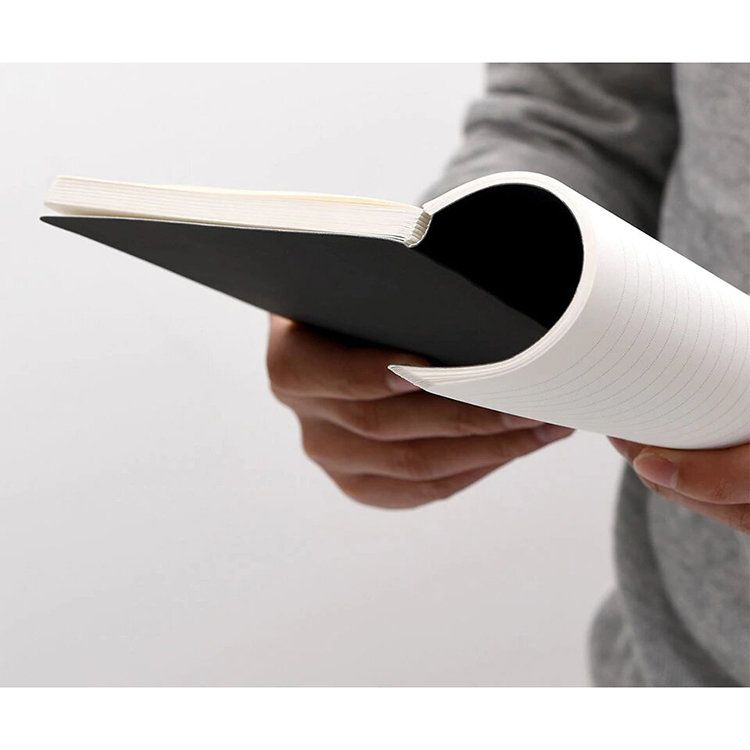 Блокнот имеет три типа страниц: часть из них разлинована в клеточку, часть - в линейку, а третья часть - не имеет никакой разметки. Добротная бумага имеет гладкую структуру, равномерно поглощает чернила и обеспечивает комфорт при письме. Плотность бумаги составляет 80 г/м2.