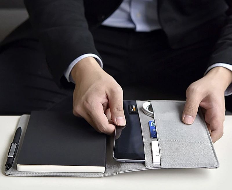 В чехле-органайзере есть несколько кармашков для хранения важных мелочей. Внутри есть отделения для удобного расположения визиток, банковских карт, билетов, шнура USB и других предметов первой необходимости. В самый большой отдел поместится даже мобильный телефон. Его удобно брать с собой на бизнес-встречи и в поездки.