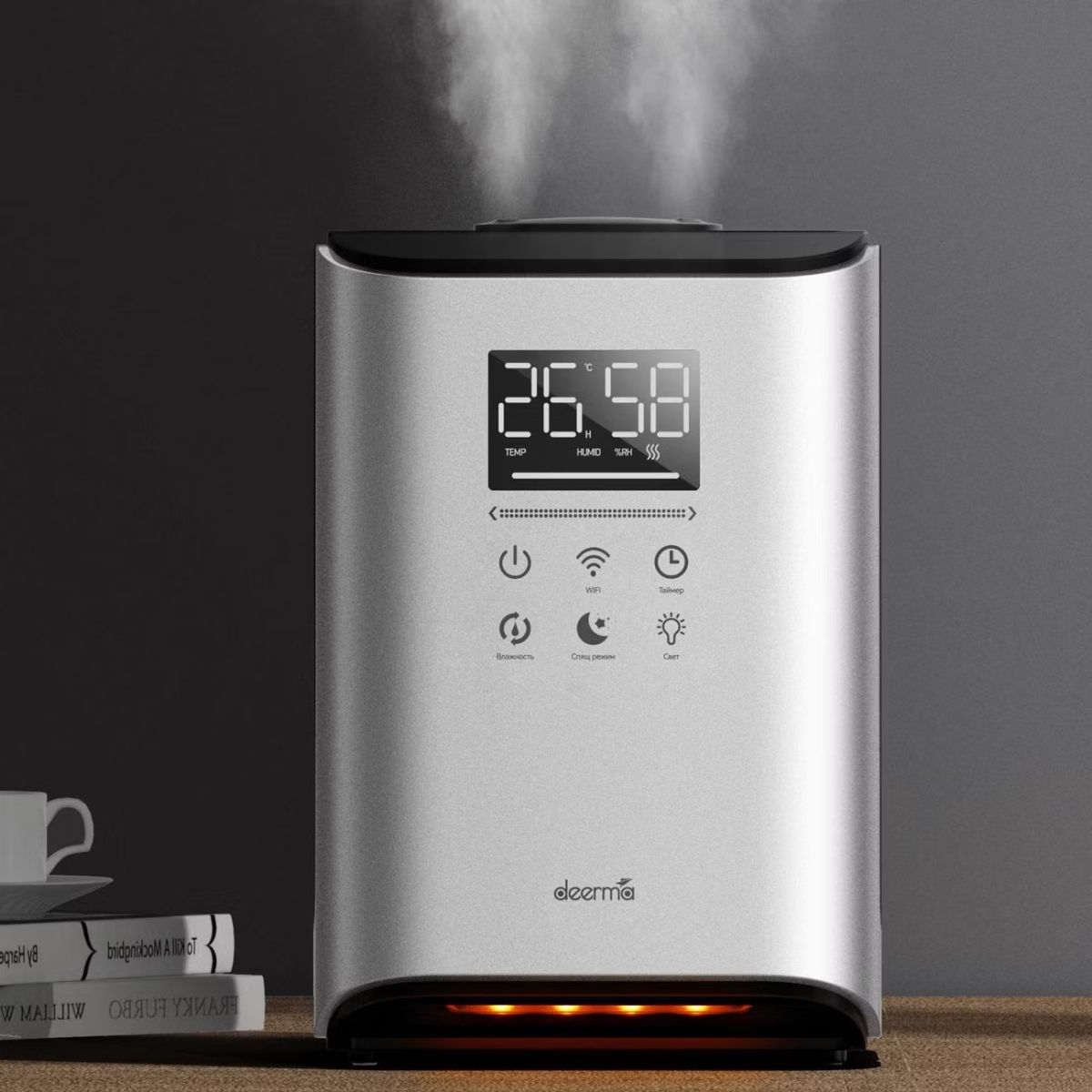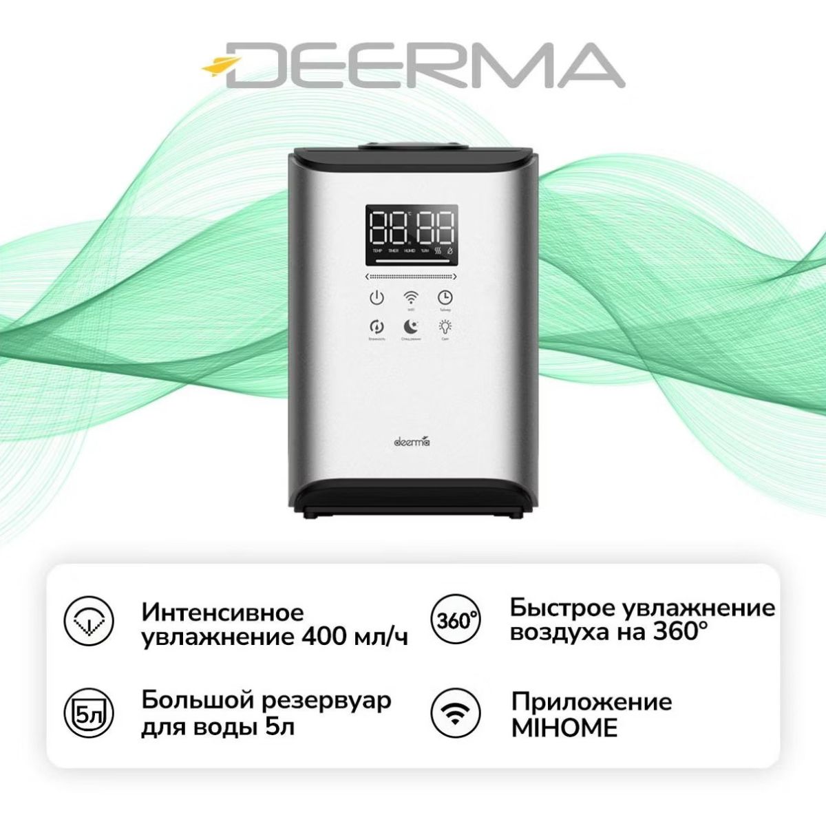 Deerma DEM-F990DW — это современный умный увлажнитель, созданный для поддержания идеального уровня влажности в помещениях площадью до 50 м². Устройство эффективно борется с сухостью воздуха, создавая благоприятную атмосферу для дыхания, сна и повседневной жизни. Компактные габариты (33,6×23,6×22,5 см) и стильный дизайн позволяют увлажнителю гармонично вписаться в любой интерьер — от гостиной до детской комнаты.