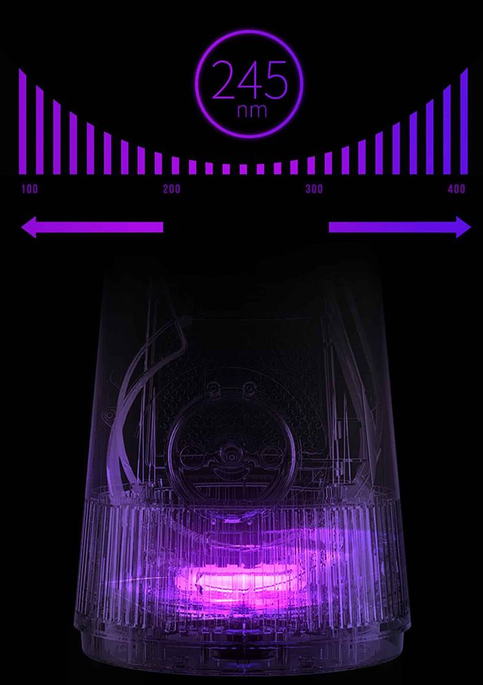 По длине волны ультрафиолета делится на 4 полосы: ABCD. Помогает лучше убивать бактерии и обладает сильной дезинфицирующей способностью.