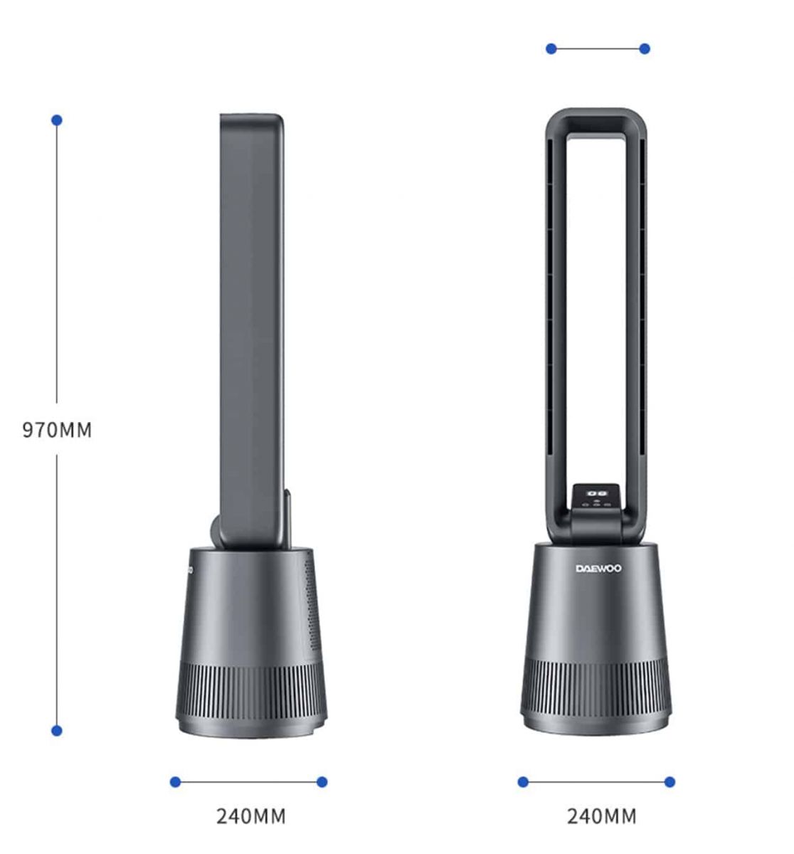 Шум безлопастного вентилятора Daewoo F10 PRO составляет всего 40 дБ.