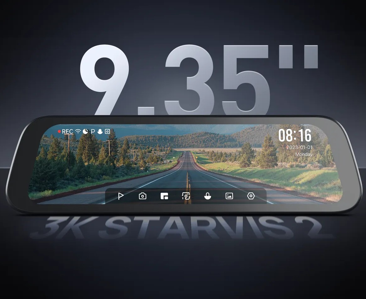 Наслаждайтесь полностью ламинированным сенсорным экраном с диагональю 9,35 дюйма, который устраняет слепые зоны и обеспечивает более широкий обзор. Оцените исключительное качество изображения с разрешением 3K благодаря 5-мегапиксельной матрице Sony STARVIS 2 IMX675.