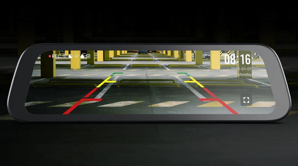При включении задней передачи видеорегистратор автоматически отмечает линии помощи при парковке, упрощая маневры при парковке. У вас также есть возможность адаптировать эти вспомогательные линии для любого типа транспортного средства или положения установки, обеспечивая удобную парковку без каких-либо проблем.
