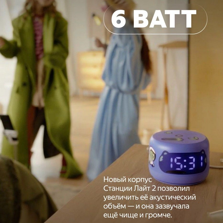 Новый корпус Станции Лайт 2 и динамик мощностью 6 Вт позволили увеличить её акустический объём, чтобы любимые треки звучали ещё чище и насыщеннее.