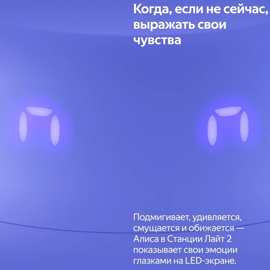 Новая умная колонка для детей и тех, кто не перестаёт ими быть. Внутри живёт более эмоциональная и функциональная Алиса, с которой никогда не бывает скучно: с ней можно веселиться, делиться секретами, играть и общаться дни напролёт — она найдет ответы на миллионы вопросов, придумает идеи, предложит классные игры, включит любимую музыку. Теперь виртуальный ассистент №1 подстраивает интонацию под ваше настроение и показывает свои эмоции с помощью глазок на LED-экране Станции. В наборе — классные стикеры и маски, чтобы у ребёнка было пространство для творчества.