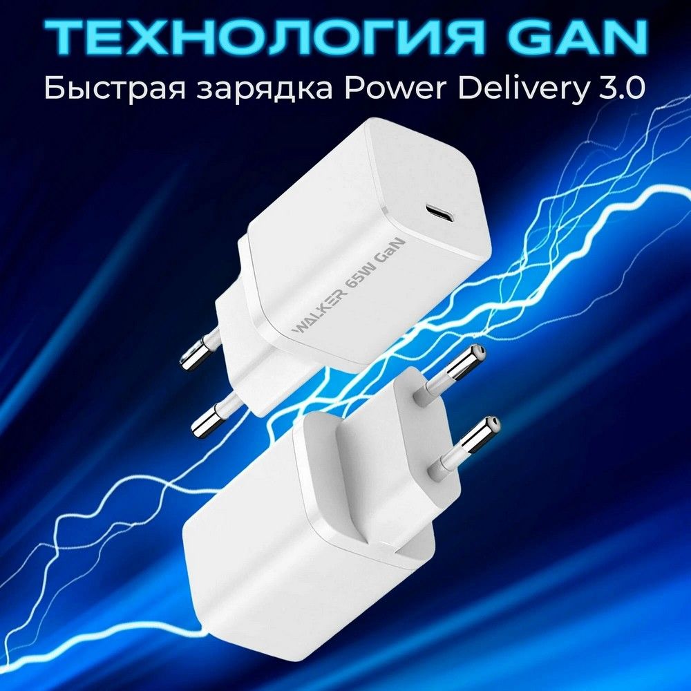 Зарядное устройство WALKER WH-65 GaN, 3,25А, 65Вт, Type-Cx1, быстрая зарядка PD