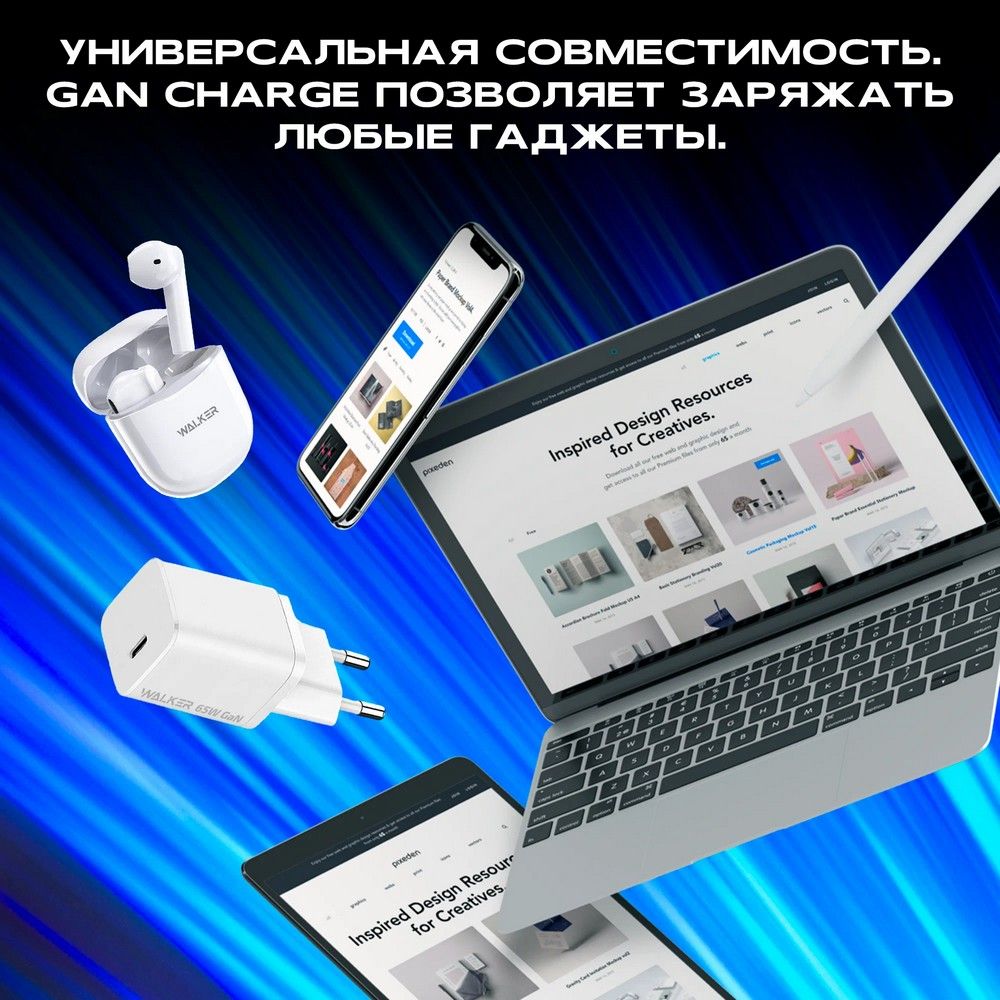 Сетевое зарядное устройство WALKER WH-65 — это ультра-быстрая и ультра-компактная зарядка для телефонов и ноутбуков, которая обеспечивает стабильное напряжение и ток до 3,4 А. С технологией GaN оно обеспечивает быструю зарядку и защиту от перегрузок.
