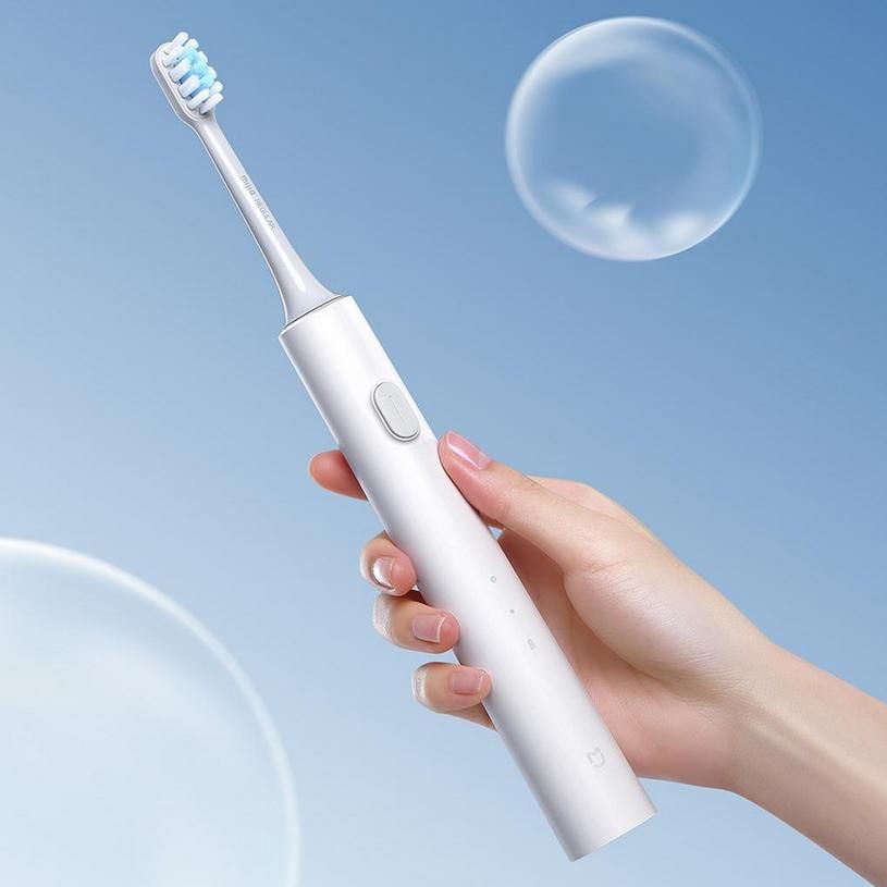 Электрическая зубная щетка Mijia T301 оснащенная звуковым мотором второго поколения с магнитной левитацией с частотой вибрации 31 000 ударов в минуту, стабильным колебанием 10°, глубокой очисткой слепой зоны ротовой полости.