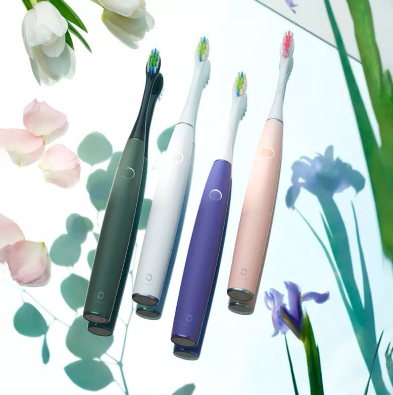 Электрическая зубная щетка Oclean Air 2 представлена ​​в четырех привлекательных цветовых вариантах: зеленом, фиолетовом, белом, розовом.